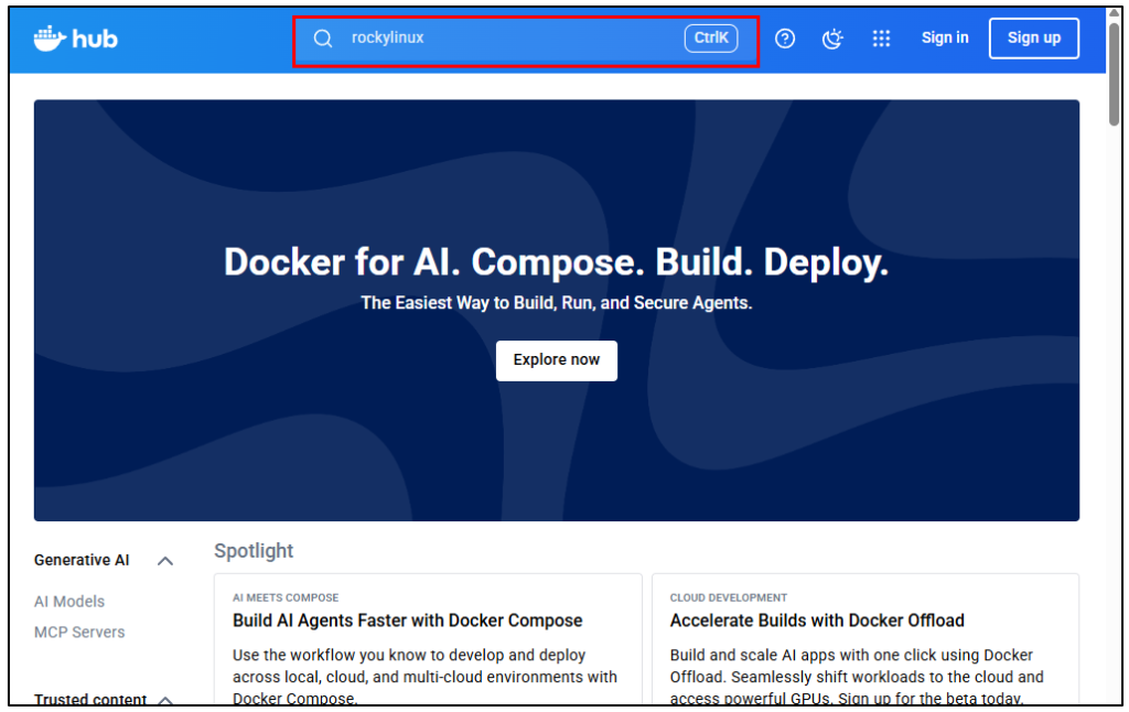 まず、Docker HubにRockyLinuxのイメージがあるか確認します。