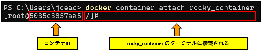 PS C:\Users\joeac> docker container attach rocky_container