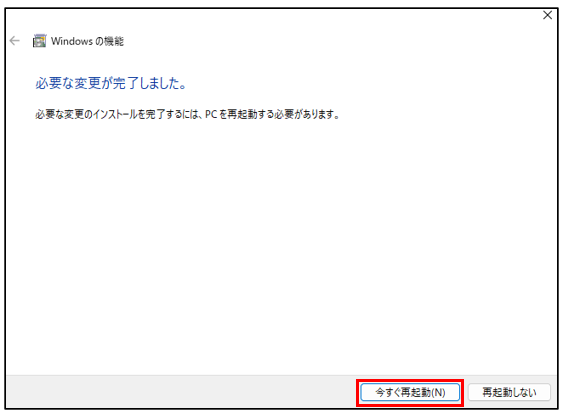 しばらく待つと「今すぐ再起動(N)」というボタンが表示されるのでクリックしてください。