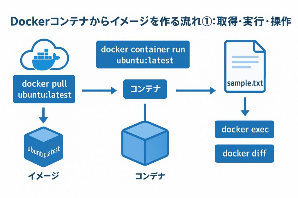 ここまでで、Ubuntuイメージを取得し、コンテナを作成・実行し、その中でファイルを操作する流れを学びました。次のステップでは、このコンテナをベースにして新しいDockerイメージを作成・公開する方法に進んでいきます。