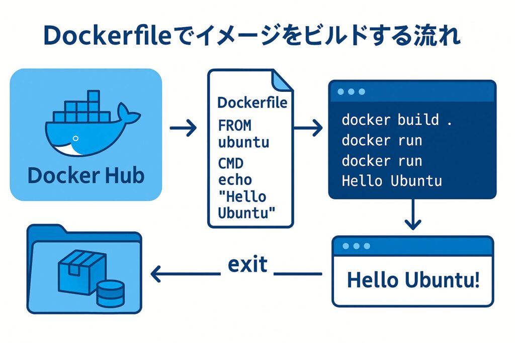 Dockerを学ぶときに「まずは動かしてみる!」のが一番です。ここでは、UbuntuをベースにしたシンプルなイメージをDockerfileからビルドし、実行してみる流れを紹介します。
