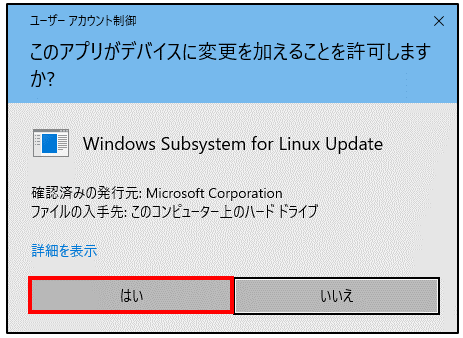 wsl_update_x64.msiを実行してインストール- 「Next → 許可 → Finish」で完了