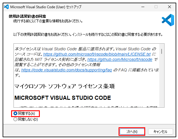 「同意する」を選び「次へ(N)」をクリック