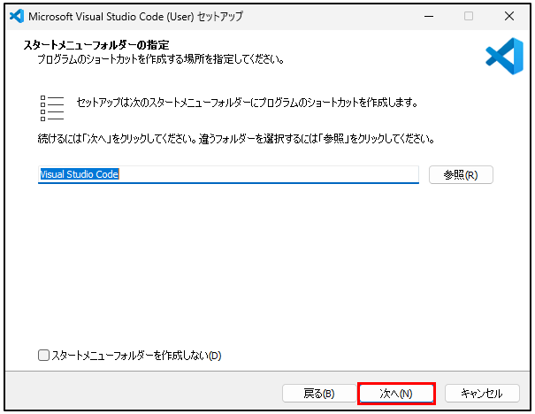 4.スタートメニューフォルダーの指定