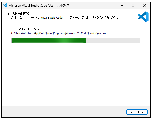 インストールが始まります。