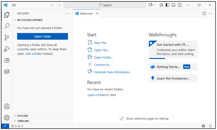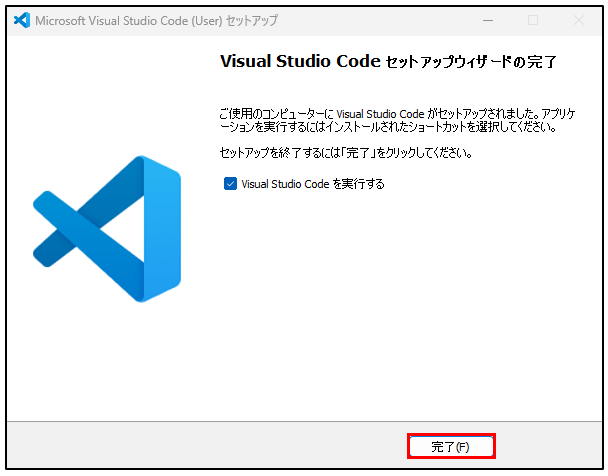 「完了(F)」をクリックするとVS Codeが起動