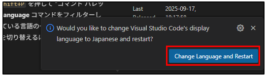 5.インストール完了後、「Change Language and Restart」を押して再起動
