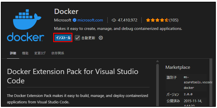 Docker拡張機能のインストール