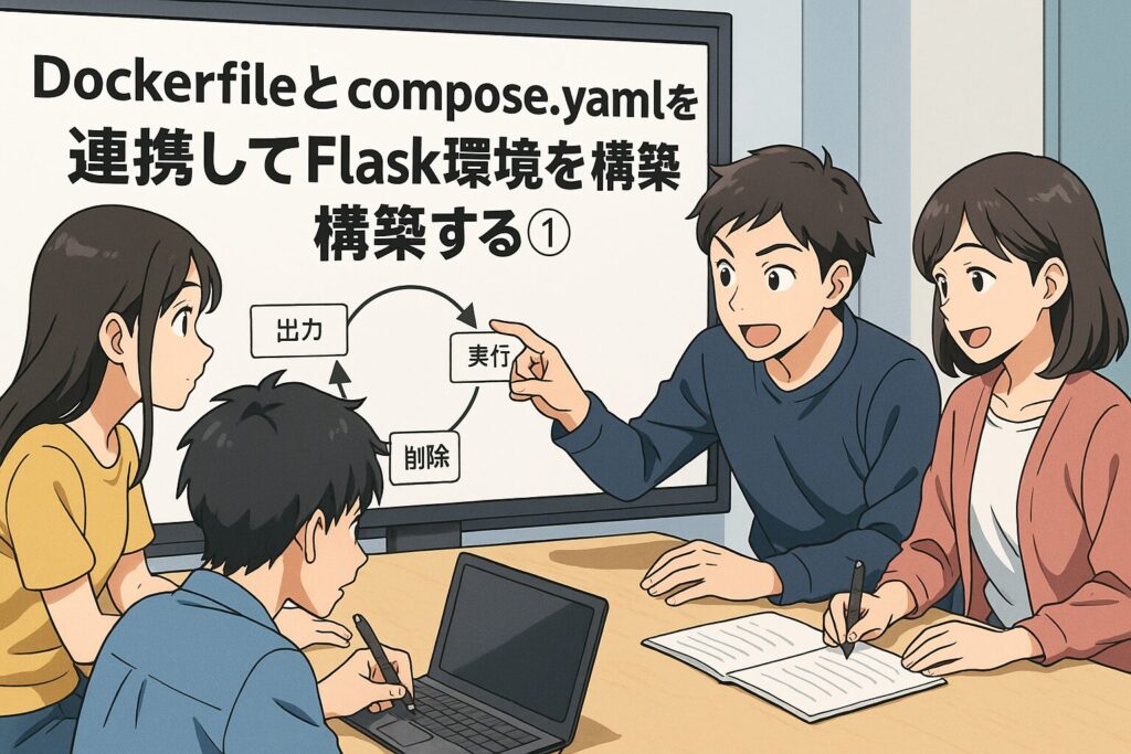 今回は、Dockerfileとcompose.yamlを組み合わせてFlaskアプリを動かす環境を構築していきます。