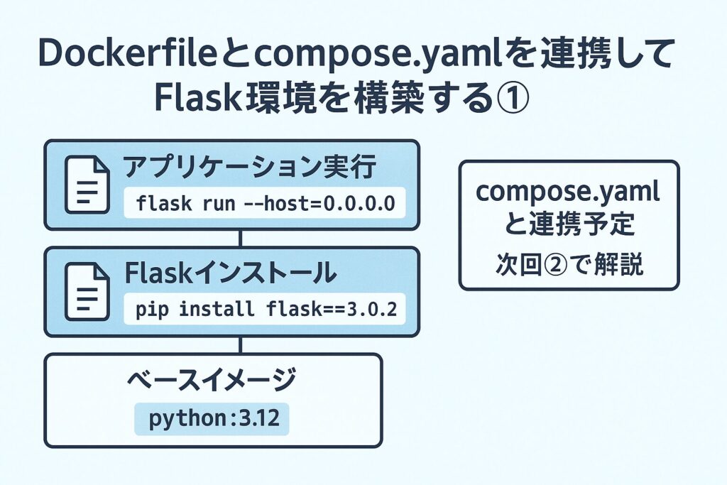 次回:「Dockerfileとcompose.yamlを連携してFlask環境を構築する②」では、