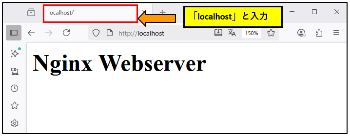 http://localhost 画面に「Nginx Webserver」と表示されれば成功です。index.html が正しくコピーされ、Webサーバーが稼働している証拠です。