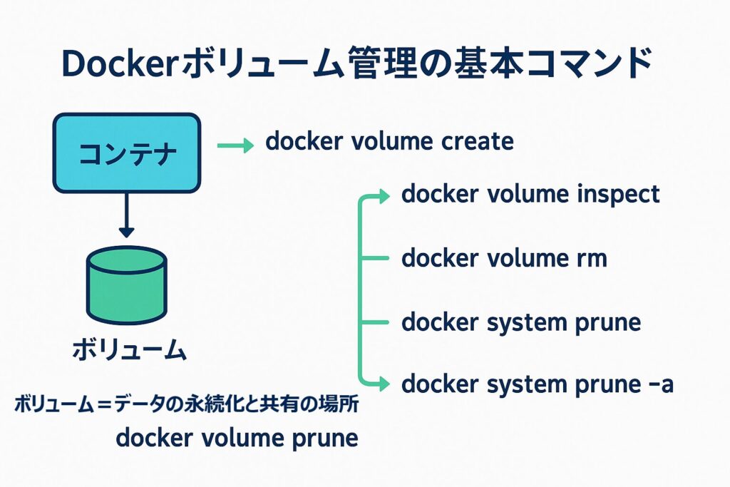 | docker volume prune | なし | 未使用のボリュームを一括削除 |
