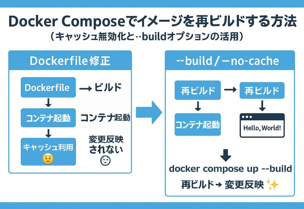 Docker超入門:Docker Composeでイメージを再ビルドする方法(キャッシュ無効化と--buildオプションの活用)