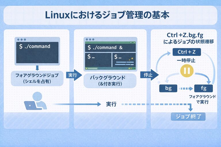 このページでは、ジョブ管理の基本的な考え方から、実際のコマンド操作までを、表や具体例を交えながらやさしく解説していきます。