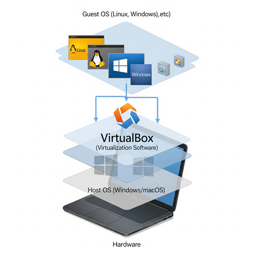 VirtualBoxを使えば、1台のPCの中で複数のOSを同時に実行できるようになります。これにより、Linuxの操作を学びながらも、メイン環境であるWindowsやmacOSを壊すことなく試行錯誤が可能になります。ここでは、VirtualBoxの概要とインストール手順について解説します。