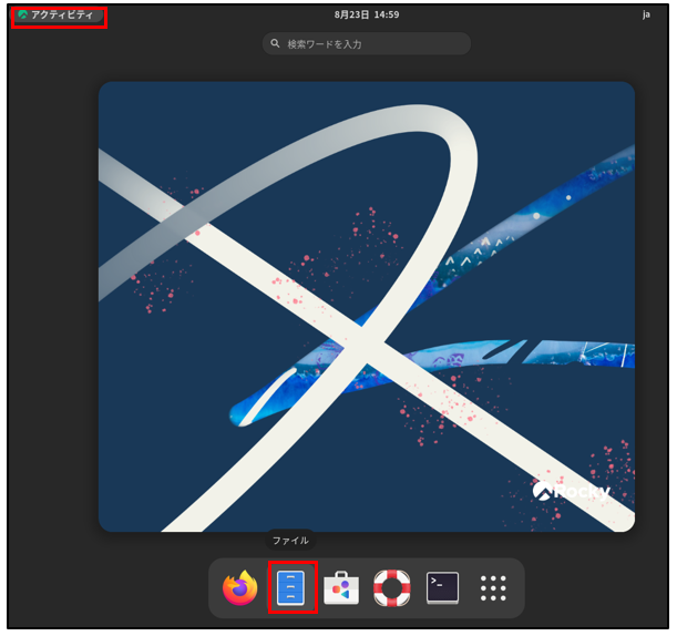 ・「アクティビティ」をクリックし、「ファイル」のアイコンをクリックします。