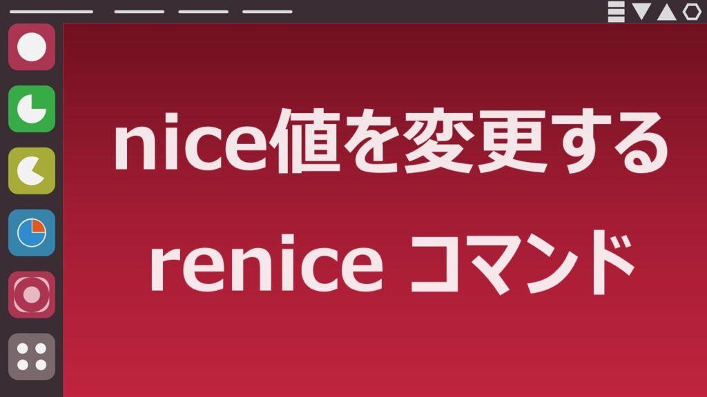 reniceコマンドは、既に実行されているプロセスのnice値(優先度)を変更するためのコマンドです。niceコマンドで設定されたプロセスの優先度を動的に変更することができます。注意点として、一般ユーザーが優先度を高くする、つまり、nice値をもとの値より小さくしようとすると、エラーとなります。