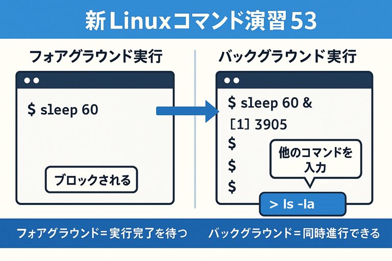 「新Linuxコマンド演習53」では、フォアグラウンドジョブとバックグラウンドジョブの違いを体験しました。