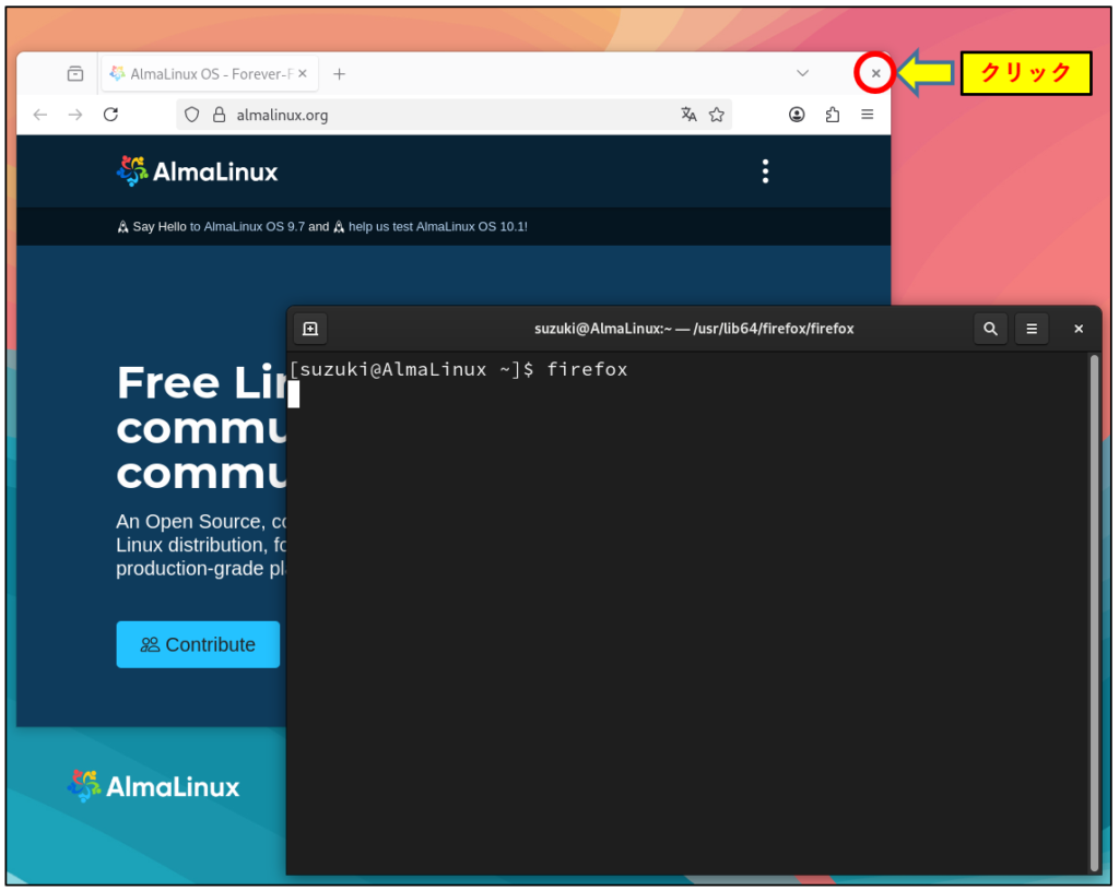 その後、firefoxを閉じて、プロンプトが戻ることを確認してください。