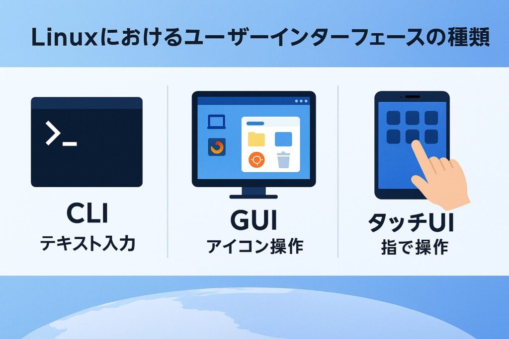 Linuxでは、CLI・GUI・タッチUIという3つの形で提供されています。
