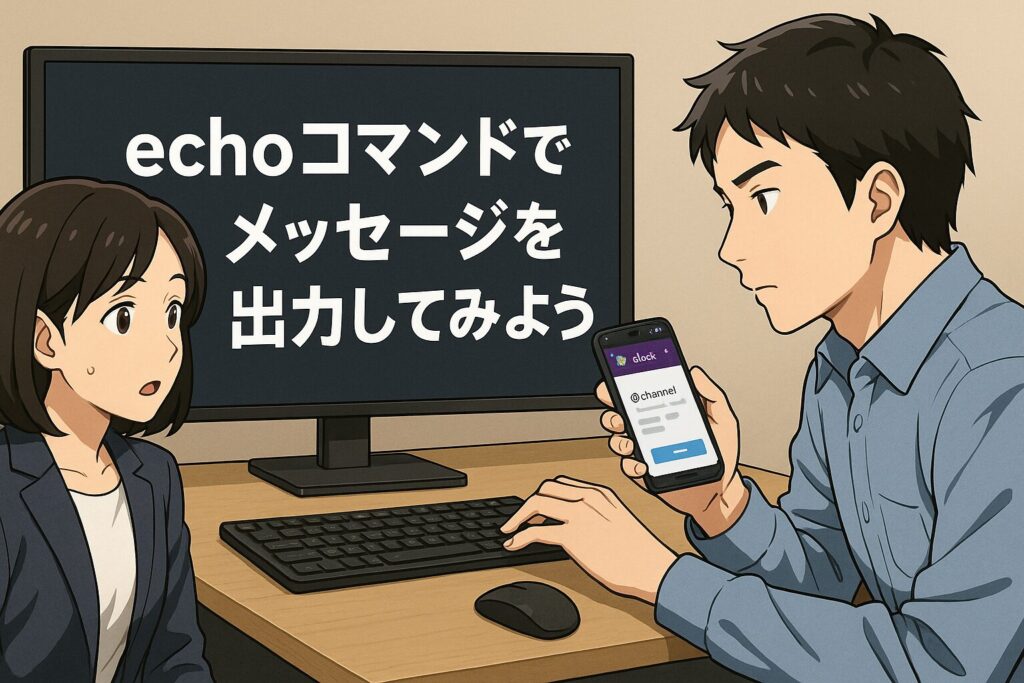 echo は、指定した文字列をそのまま画面(標準出力)に表示するシンプルなコマンドです。