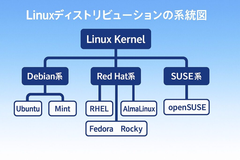 Linuxのディストリビューションは、大きく分けると「系統(ファミリー)」があります。