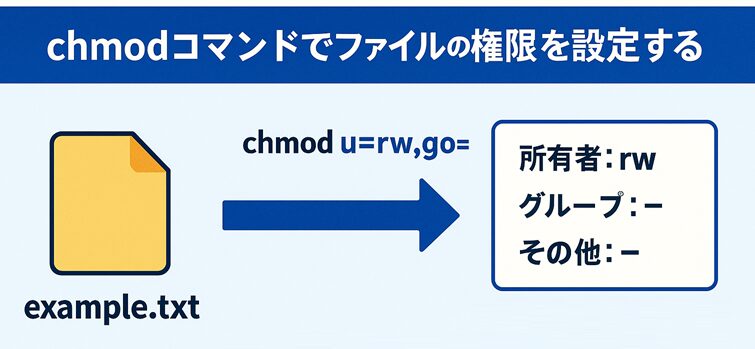 | 権限を明示的に指定 | chmod u=rw,go= file.txt | 所有者のみ読み書き可 |
