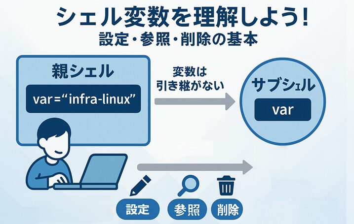 この記事では、シェル変数の設定・参照・削除の基本をわかりやすく解説します。