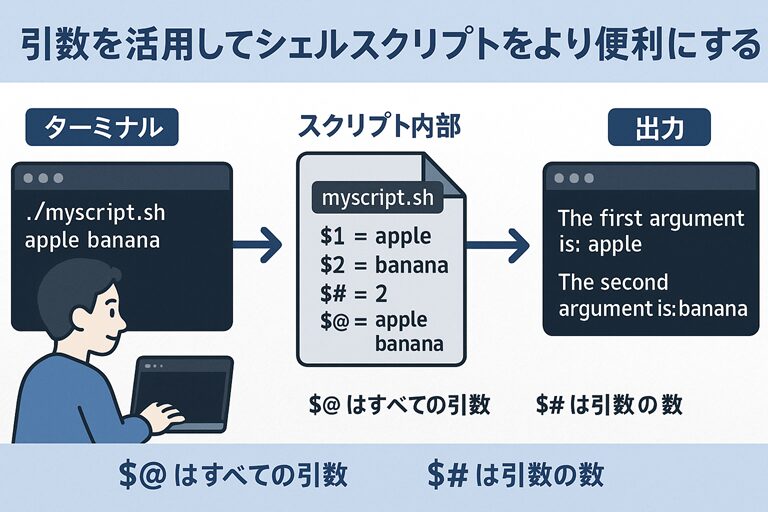 シェルスクリプトにおける 引数 とは、スクリプトを実行するときに渡す追加情報 のことです。