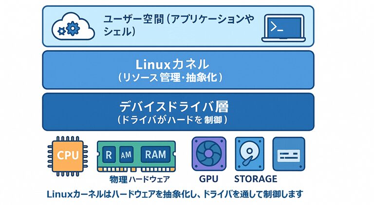 この記事では、Linuxがどうやってハードウェアとやり取りしているのかを、わかりやすく解説していきます💡