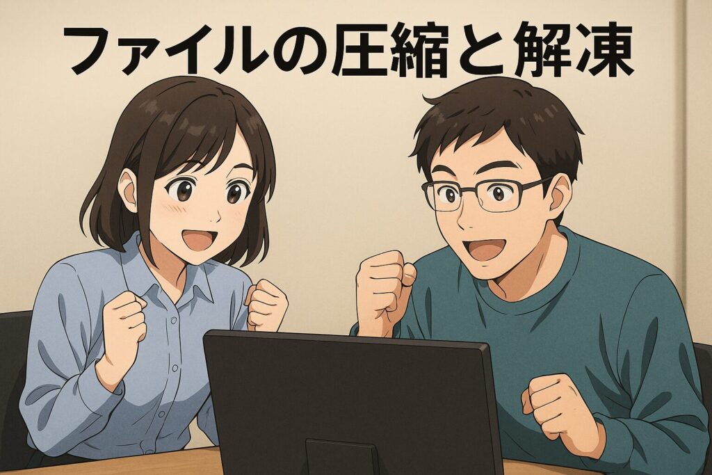 圧縮はファイルサイズを小さくして保存することで、解凍は圧縮ファイルを元に戻す操作です。