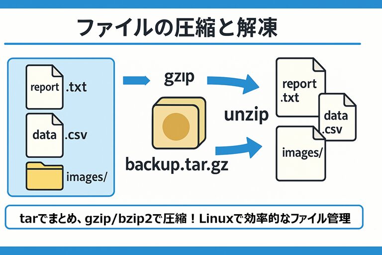 ファイルの圧縮と解凍は、Linuxを扱ううえで欠かせないスキルです📘