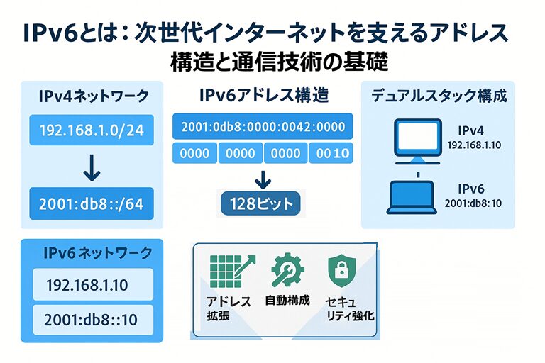 IPv6は、IPv4の後継となる次世代インターネットプロトコルであり、より多くのアドレスを提供し、通信の効率化やセキュリティ強化を実現しています。