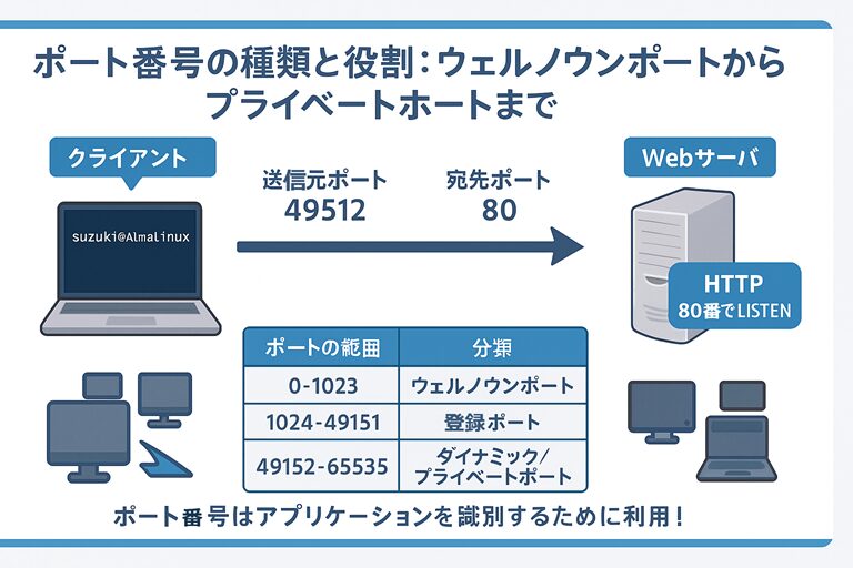 新Linux入門|ポート番号の種類と役割:ウェルノウンポートからプライベートポートまで