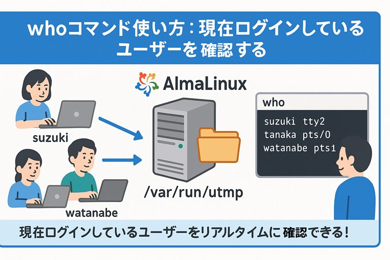 Linuxを使っていると、「今ログインしているのは誰?」「どの端末から接続しているの?」といった情報を確認したいことがありますよね。