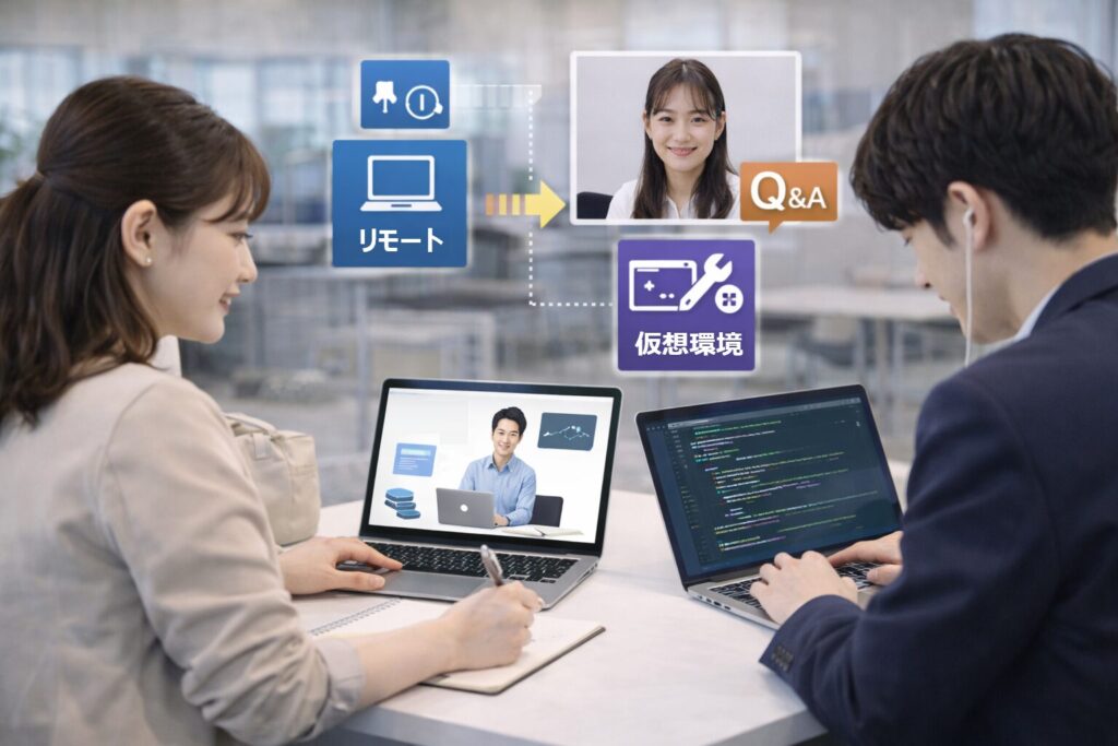チャットや通話を通じて、エンジニアに直接質問できる体制が整っており、プログラミングに限らず、パソコン操作などの基本的な疑問にも柔軟に対応してもらえるのも、初心者にとって心強いポイントです。