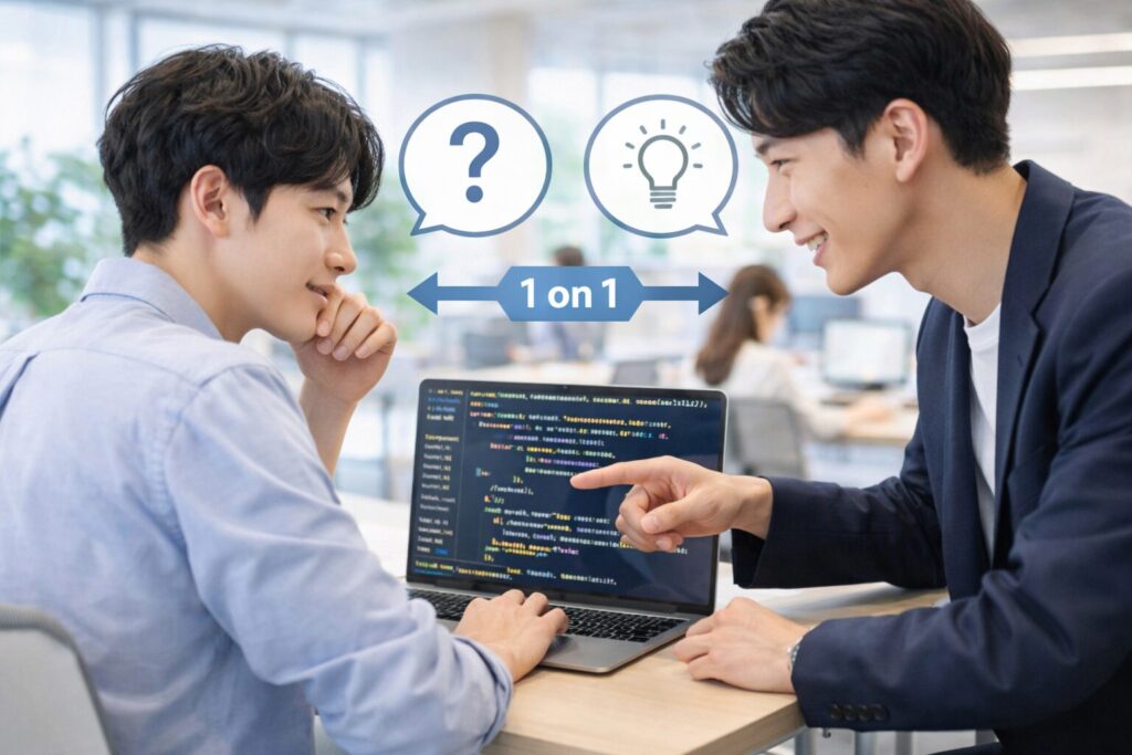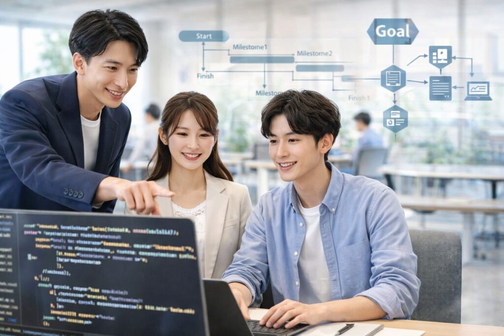 学習の進め方も、テックエリートならではの特徴があります。講師は「上司役」、受講生は「部下役」という実務に近い関係性で課題に取り組みます。フィードバックは実際の現場基準で行われ、決して甘いものではありません。加えて、進捗管理も徹底されるため、納期意識や報連相といったビジネススキルも自然と身についていきます。この環境が、即戦力としての基礎を着実に鍛えてくれます。